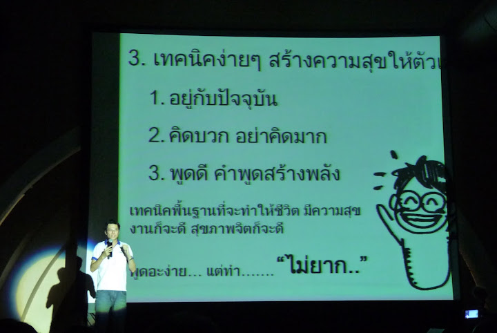 เทคนิคข้อที่ 3 คือพูดดี คำพูดสร้างพลัง ต้องพูดว่า “ผมทำได้” แล้วเราจะรู้สึกถึงพลังของความเป็นไปได้ หันไปพูดกับคนข้างๆว่าเราจะทำมันได้ แล้วมันจะเป็นไปได้